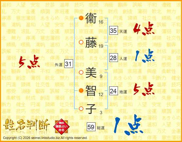 衞藤美智子さんの外運は31画の5点!