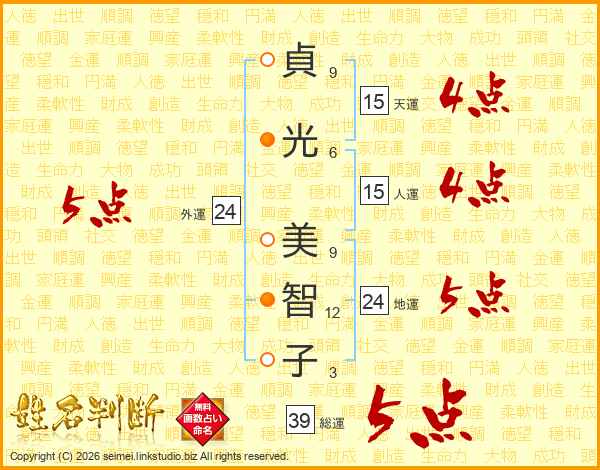 貞光美智子さんの総運は39画の5点!