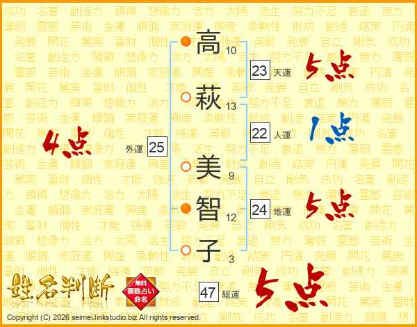 高萩美智子さんの総運は47画の5点!