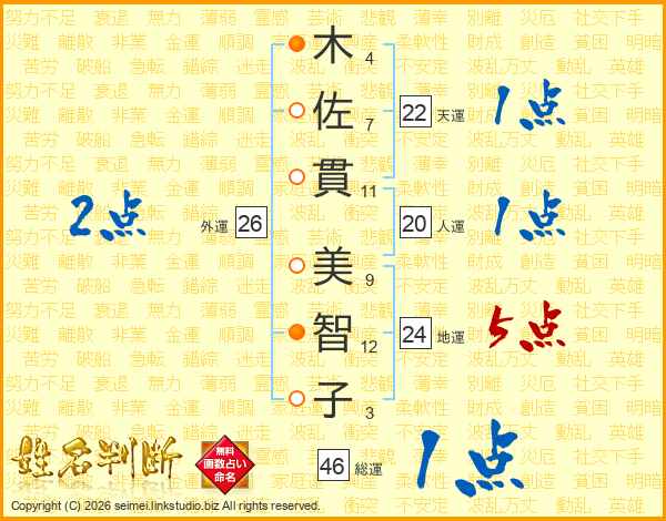 木佐貫美智子さんの外運は26画の2点!