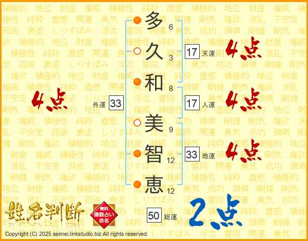 多久和美智恵さんの外運は33画の4点!