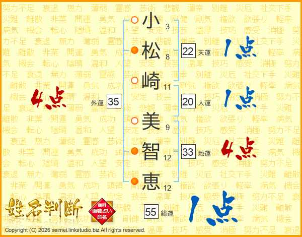 小松崎美智恵さんの地運は33画の4点!