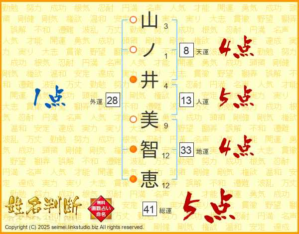 山ノ井美智恵さんの総運は41画の5点!