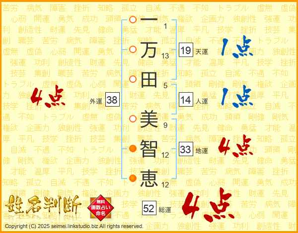 一万田美智恵さんの総運は52画の4点!