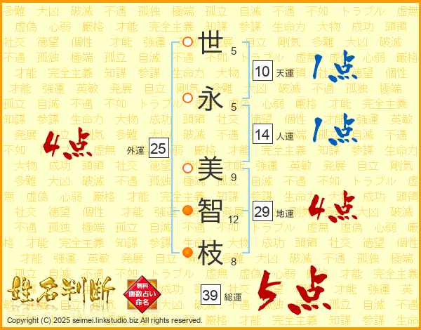 世(5画)永(5画) 美(9画)智(12画)枝(8画)