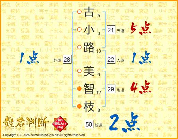 古(5画)小(3画)路(13画) 美(9画)智(12画)枝(8画)
