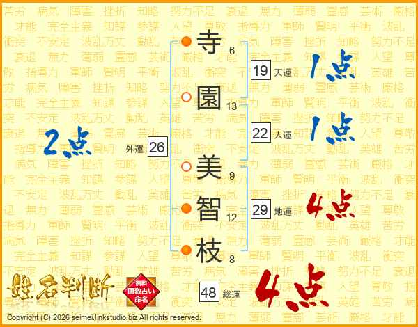 寺(6画)園(13画) 美(9画)智(12画)枝(8画)