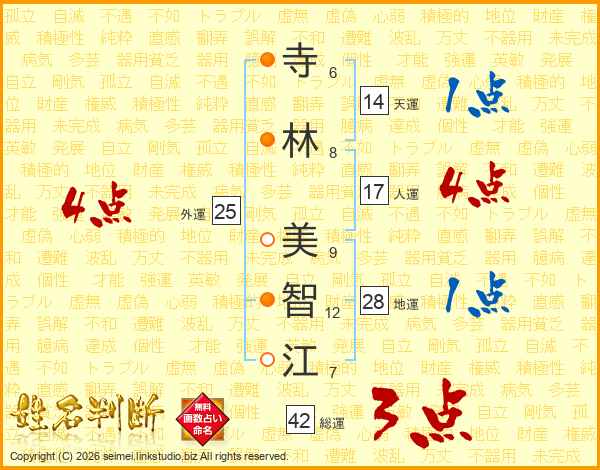 寺林美智江さんの人運は17画の4点!