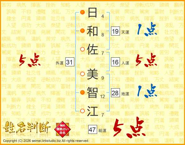 日和佐美智江さんの総運は47画の5点!