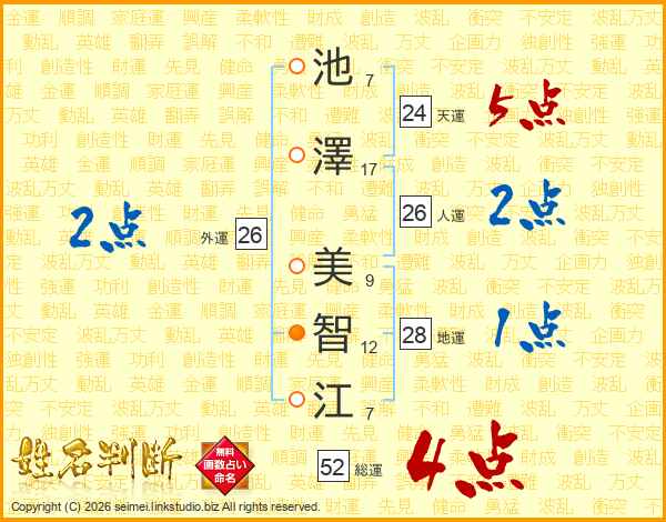 池(7画)澤(17画) 美(9画)智(12画)江(7画)