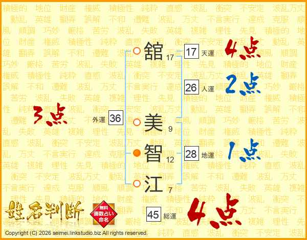 舘(17画) 美(9画)智(12画)江(7画)