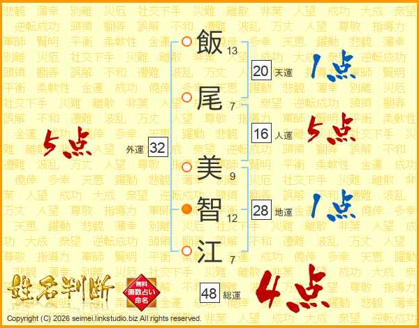飯尾美智江さんの外運は32画の5点!