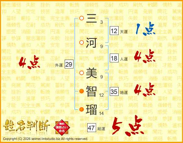 三河美智瑠さんの総運は47画の5点!