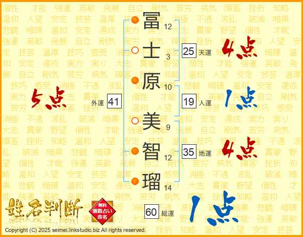 冨(12画)士(3画)原(10画) 美(9画)智(12画)瑠(14画)