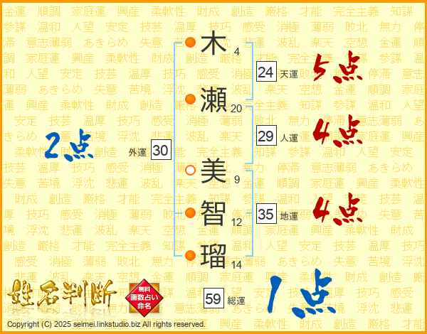 木瀬美智瑠さんの天運は24画の5点!