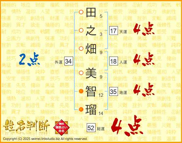 田之畑美智瑠さんの総運は52画の4点!