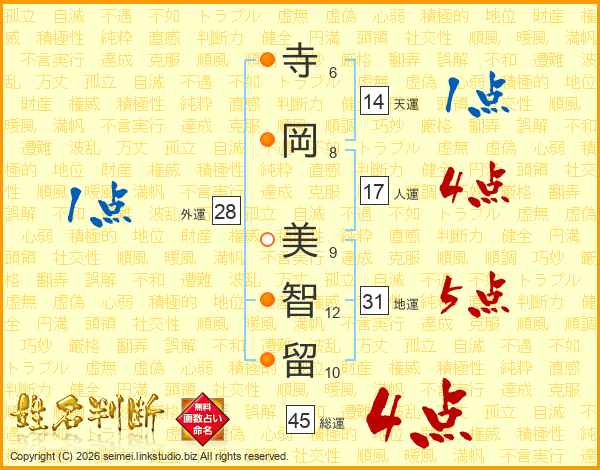 寺岡美智留さんの天運は14画の1点!