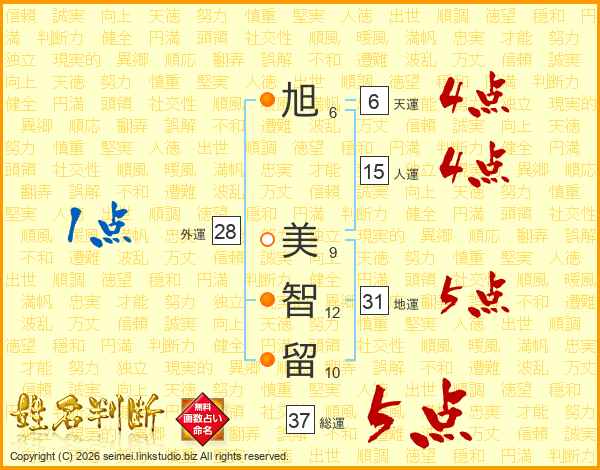 旭美智留さんの総運は37画の5点!