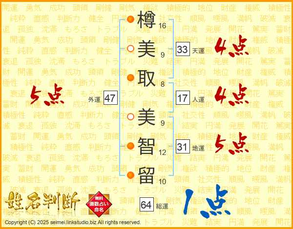 樽美取美智留さんの天運は33画の4点!