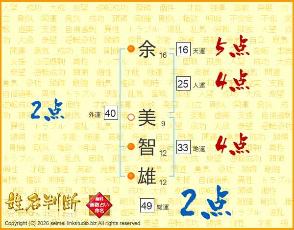 余美智雄さんの人運は25画の4点!