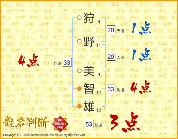 狩野美智雄さんの外運は33画の4点!