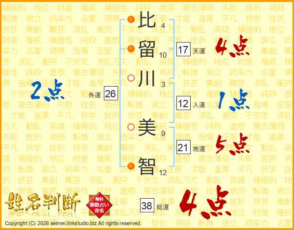 比(4画)留(10画)川(3画) 美(9画)智(12画)
