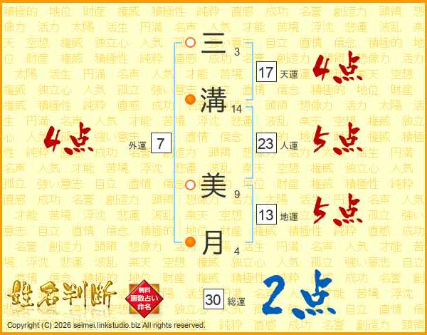 三溝美月さんの天運は17画の4点!