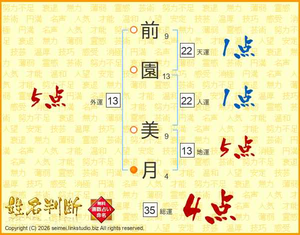 前園美月さんの総運は35画の4点!