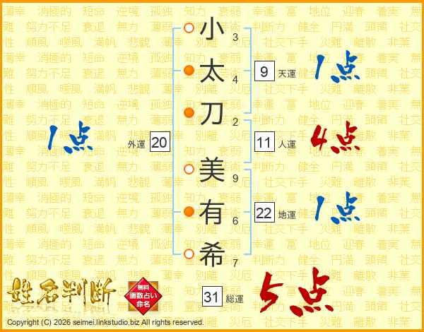 小太刀美有希さんの総運は31画の5点!