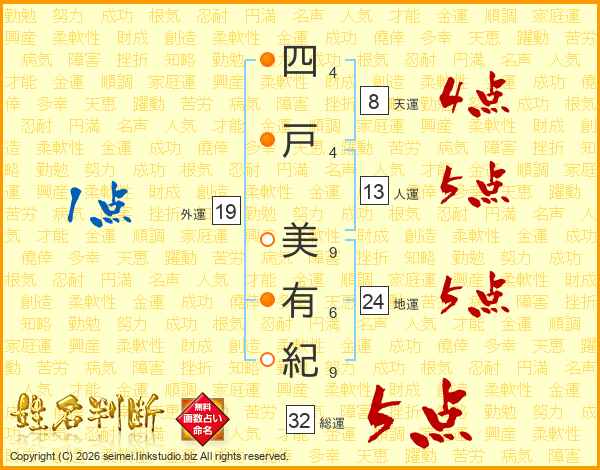 四戸美有紀さんの総運は32画の5点!