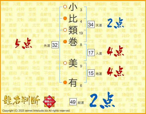 小(3画)比(4画)類(19画)巻(8画) 美(9画)有(6画)