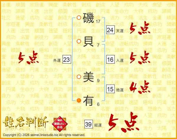磯貝美有さんの総運は39画の5点!