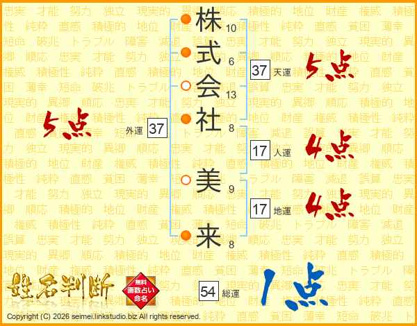 株式会社美来さんの外運は37画の5点!