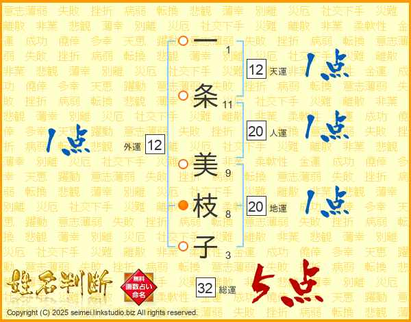一条美枝子さんの総運は32画の5点!