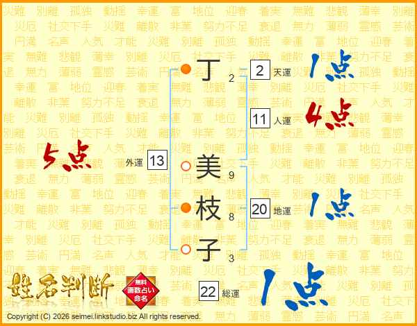 丁美枝子さんの総運は22画の1点!
