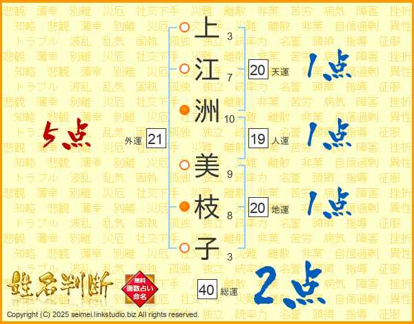 上(3画)江(7画)洲(10画) 美(9画)枝(8画)子(3画)