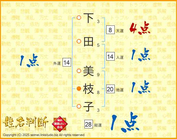 下田美枝子さんの地運は20画の1点!