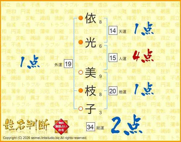 依(8画)光(6画) 美(9画)枝(8画)子(3画)