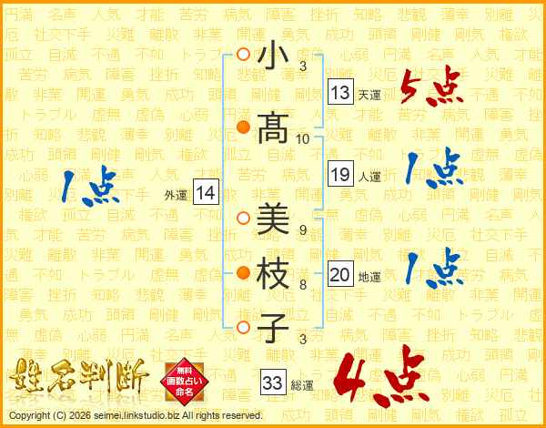 小髙美枝子さんの総運は33画の4点!