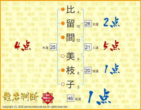 比留間美枝子さんの総運は46画の1点!