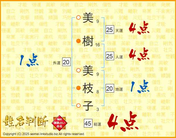 美樹美枝子さんの人運は25画の4点!