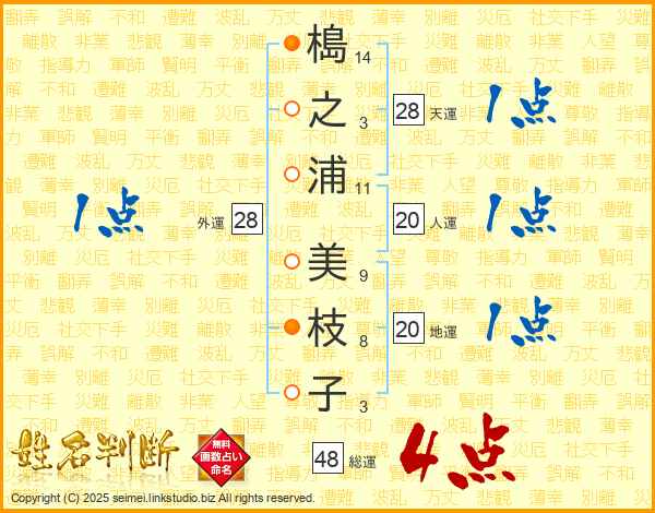槝(14画)之(3画)浦(11画) 美(9画)枝(8画)子(3画)
