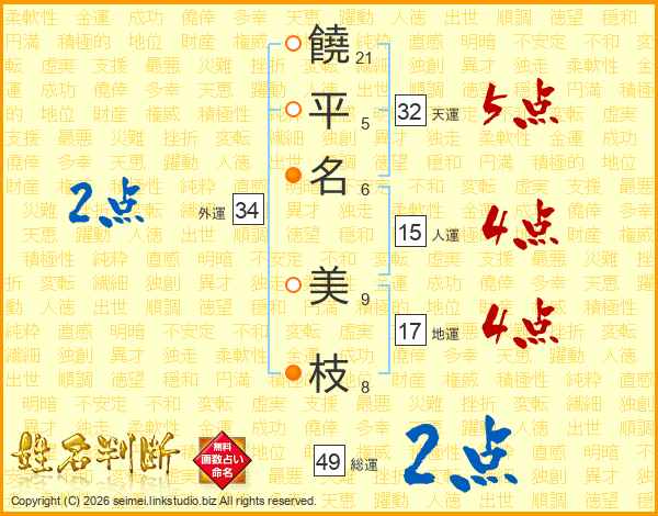饒平名美枝さんの天運は32画の5点!