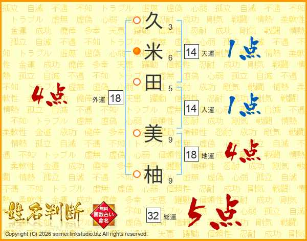 久米田美柚さんの外運は18画の4点!