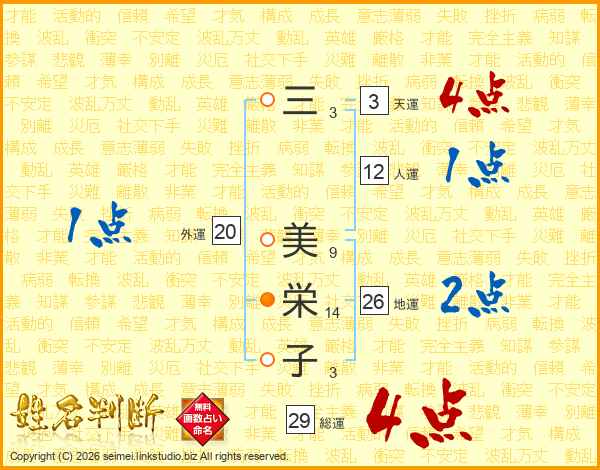 三美栄子さんの総運は29画の4点!