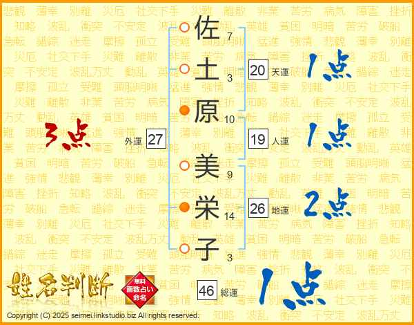 佐(7画)土(3画)原(10画) 美(9画)栄(14画)子(3画)