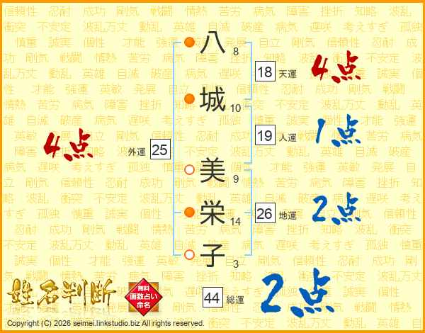 八城美栄子さんの総運は44画の2点!