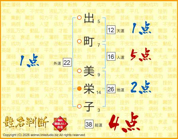 出町美栄子さんの総運は38画の4点!