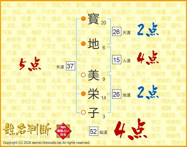 寳地美栄子さんの総運は52画の4点!