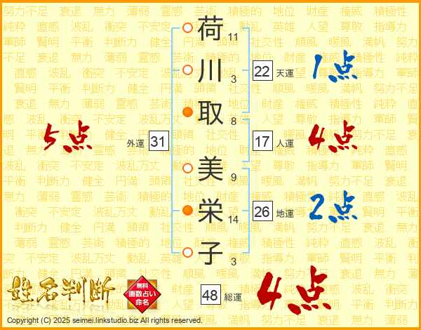 荷川取美栄子さんの総運は48画の4点!